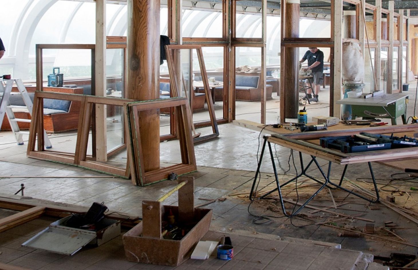 Bij de transformatie is voor ca. 90% hergebruikte materialen gekozen. De binnenwanden zijn oude gevelkozijnen geoogst uit een slooppand. Met enkele aanpassingen in details zijn deze kozijnen toepasbaar gemaakt. Ook alle staalconstructies, houtwerk en zelfs installatie zijn gemaakt van geoogste materialen.
