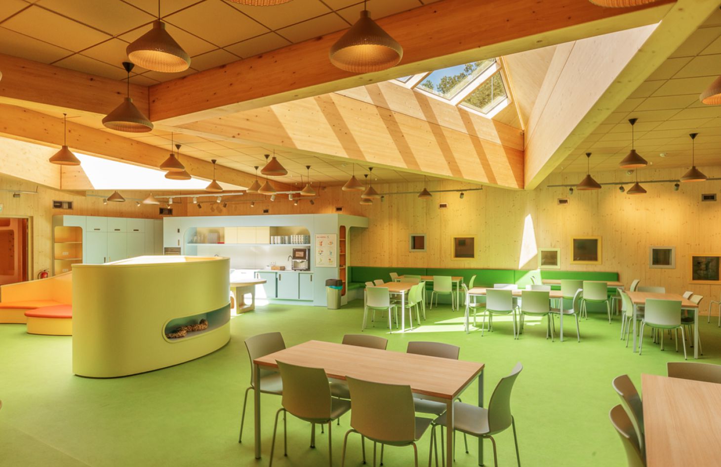 De kleuren in het hotel zijn gebaseerd op de kleurenleer van de beroemde architect Le Corbusier. Geïnspireerd door de natuur zorgen deze kleuren voor een harmonieuze en warme uitstraling, waardoor kinderen en begeleiders zich direct thuis voelen.