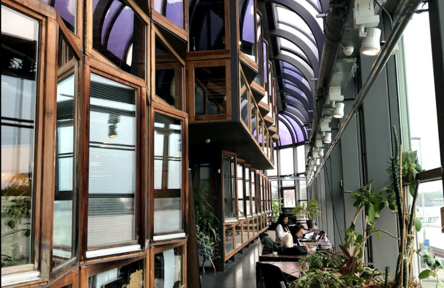 Bij de transformatie is voor ca. 90% hergebruikte materialen gekozen. De binnenwanden zijn oude gevelkozijnen geoogst uit een slooppand. Met enkele aanpassingen in details zijn deze kozijnen toepasbaar gemaakt. Ook alle staalconstructies, houtwerk en zelfs installatie zijn gemaakt van geoogste materialen.